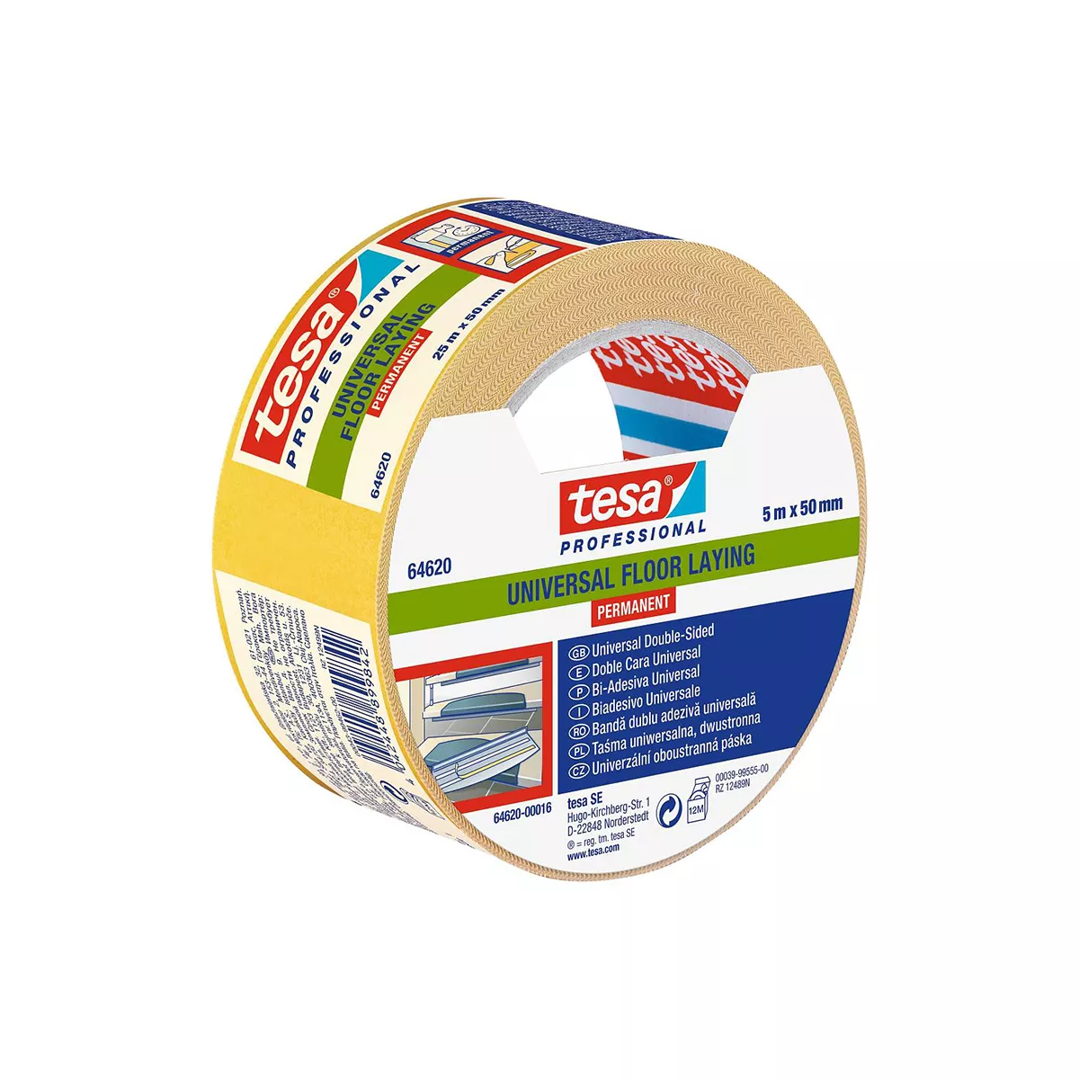 Двойнозалепваща лента Pp, 5 мх50 м м, за мокети – здраво и невидимо фиксиране на предмети, огледала и мокети.