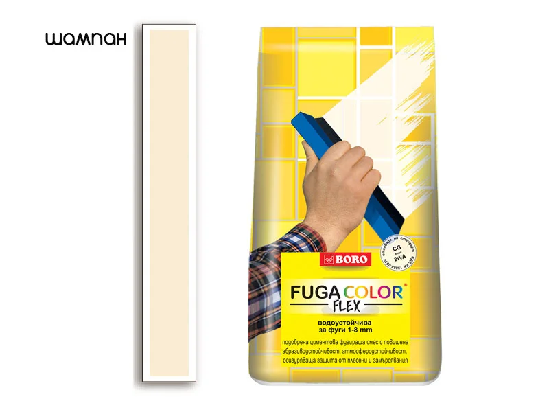 Фугираща смес Фугаколор Флекс – Шампан – идеално решение за дълготрайно и водоотблъскващо фугиране на плочки, теракота и гранитогрес.