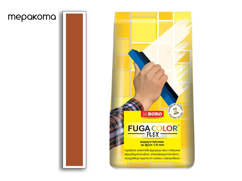 Фугираща смес Фугаколор Флекс – Теракота – идеално решение за дълготрайно и водоотблъскващо фугиране на плочки, теракота и гранитогрес.
