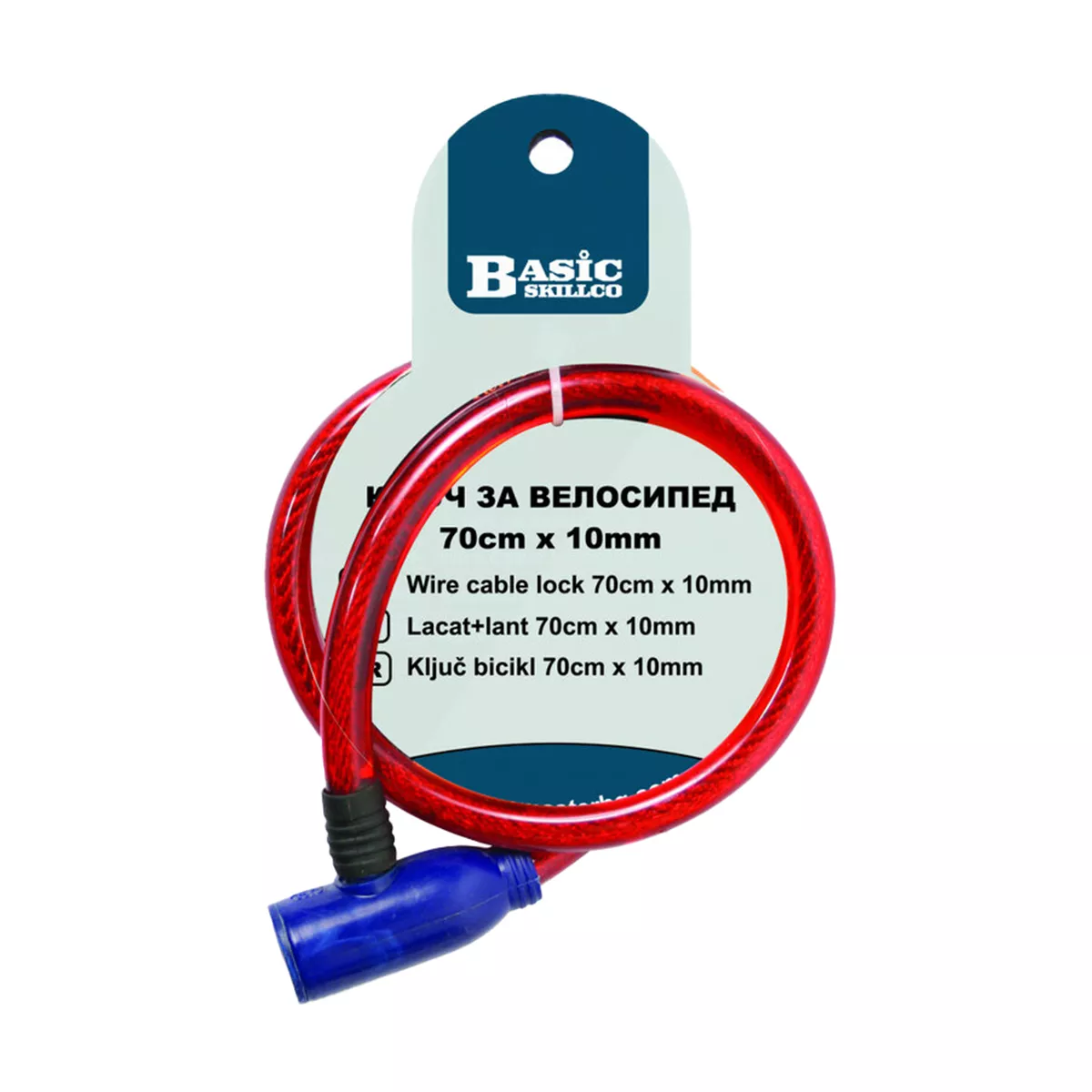 Практичен ключ за велосипед BS с въже 70 см и дебелина 10 мм за сигурно заключване.