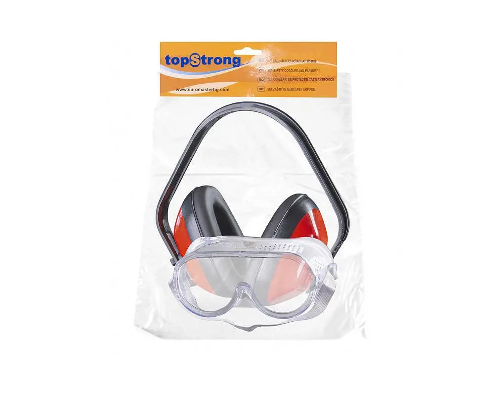 Практичен комплект защитни очила и антифон TS за безопасна работа в шумна среда. Комфорт и надеждна защита в едно решение.