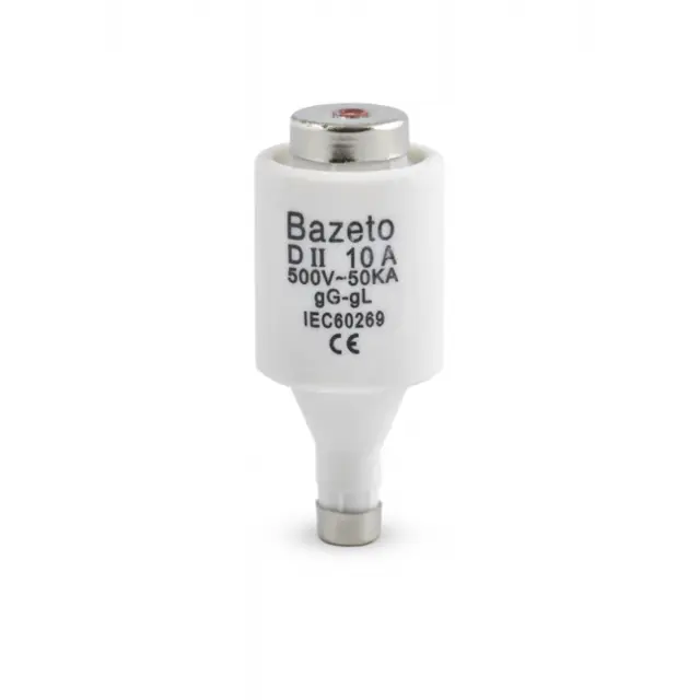 Патрон 10A (порцеланов/керамичен предпазител) е класически стопяем предпазител, предназначен за защита на електрически инсталации при повишен ток. Изработен е от керамично тяло, което осигурява висока устойчивост на температура и безопасна работа при прекъсване на веригата.