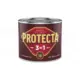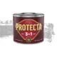 **Боя 3в1 Protecta Черна Гланц** е висококачествен продукт, който съчетава ръждопреобразувател, антикорозионен грунд и декоративно покритие в едно. Предназначена е за директно нанасяне върху ръждясали метални повърхности без необходимост от предварително почистване до метален блясък или нанасяне на грунд. Идеална е за защита и декорация на огради, парапети, метални конструкции, врати и градинска мебел.